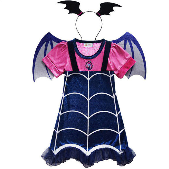 Get ready for some spooky fun with our Girls Vampirina Dress Costume. This adorable costume features a stylish black and purple dress, perfect for any little vampire lover. Let your child's imagination soar as they transform into the lovable Vampirina in this delightful dress.