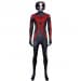 This Ant-Man costume includes a polyester red and black jumpsuit with foam muscle chest padding and a hook-and-loop closure at the back. The attached belt has a plastic buckle in the front, and a molded plastic Ant-Man face mask resembling his silver and red helmet completes the superhero look.