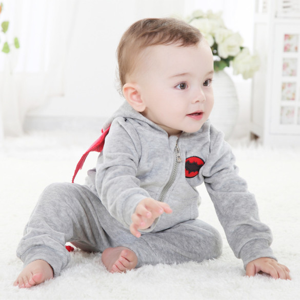 Transform your little one into the Dark Knight with this adorable Baby Grey Batman Costume by InCharacter. This onesie jumpsuit features the iconic grey Batman design, perfect for your mini superhero's cosplay adventures. Let your baby save Gotham in style with this cute and comfortable Batman costume!