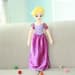 Rapunzel Doll Looking extra soft and sweet as a plush doll, Tangled's Rapunzel dreams of faraway adventures. Rapunzel is fully costumed in intricate detail, with soft velvet golden hair and her signature lavender dress accented with glitter foil. Features Velvet hair and bottom dress Satin top dress Embroidered detailing Puff sleeves Polyester 19" inches.