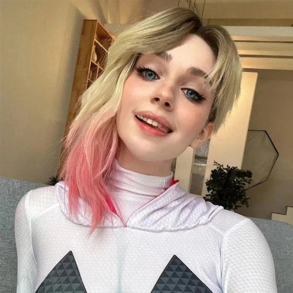 Get ready to channel your inner Spider Gwen Stacy with this Spider Man Across The Spider Verse Spider Gwen Stacy Wig. Perfect for cosplay or costume parties, this wig flawlessly captures Gwen Stacy's unique style and adds a touch of authenticity to your Spider Gwen Stacy look. Transform into the powerful superhero and turn heads with this meticulously crafted Spider Gwen Stacy Cosplay Costume Wig.