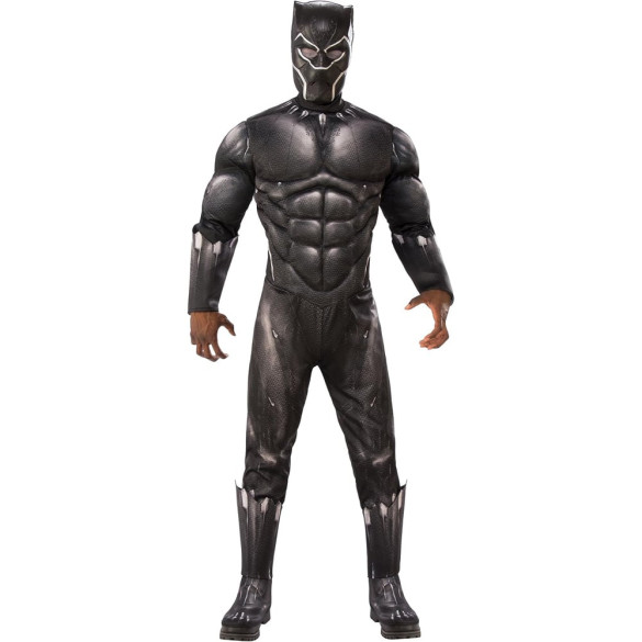 Elevate your superhero style with our Men's Deluxe Black Panther Muscle Chest Battle Suit Costume And Mask. Unleash your inner warrior as you don this iconic outfit, exuding strength and power. Intensify your next costume party or convention with this must-have ensemble. Adults size fits most adults, height up to 165-185cm.