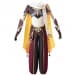 Genshin Impact Kong Cosplay Costume. Genshin Impact is an open world all action role-playing game. In the game, the players control a number of party members, that have different abilities, gear, weapons and personalities. You can switch between characters during fights in order to use a different mix of skills and attacks. The reason Genshin Impact is so popular is because it is a F2P game. Kong is considered a traveler, a playable main character. Kong has a twin sibling from another world but the Unknown God captured the twin. Players of the game will determine Kong's personality. One of the trait that Kong has is compassion. Kong has bright blonde hair, slim body, golden yellow eyes and fair skin. Here we have Kong's costume that is a cloak, top and pants. Beautifully designed, excellent workmanship, lightweight, fashionable and creative, this is a must have costume for all kinds of occasions, events and parties.