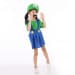 This feminine twist on the classic Super Luigi character includes a Luigi dress in his signature blue and green. The two-tiered ruffled skirt pairs well with bubble sleeves and sewn-on yellow overall buttons. Your little girl is going to love this dress.