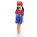 This feminine twist on the classic Super Mario character includes a Mario costume in his signature blue and red. The two-tiered ruffled skirt pairs well with bubble sleeves and sewn-on yellow overall buttons. Your little girl is going to love this dress.