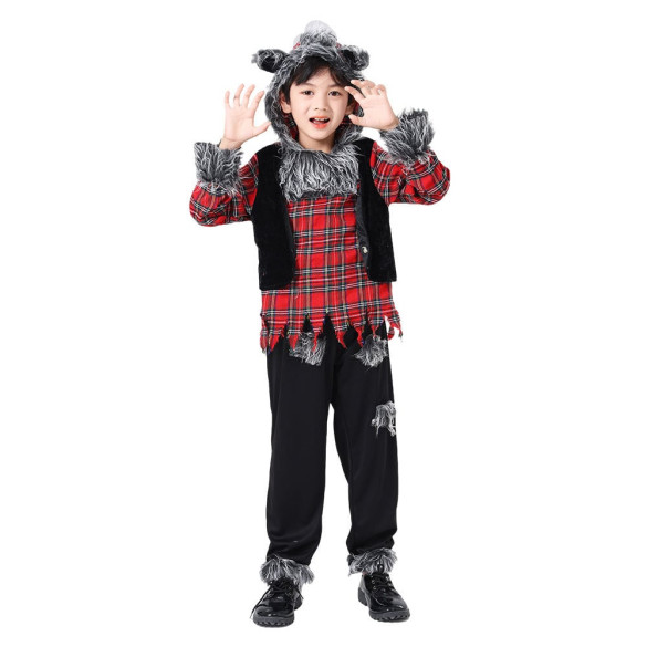 Transform your little one into a howling werewolf with this Boys Werewolf Costume. This detailed hoodie and pants set is perfect for Halloween or playtime dress-up. Let your child unleash their inner beast with this fun and realistic werewolf cosplay outfit.