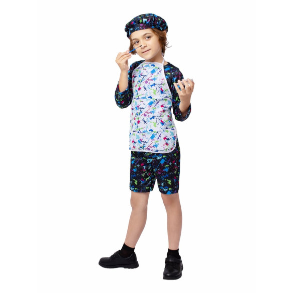 Let your little artist's creativity shine with this Kids Painter Costume. The paint splatter apron and shirt set is perfect for artistic play and imaginative cosplay. Encourage self-expression and fun with this vibrant painter outfit.