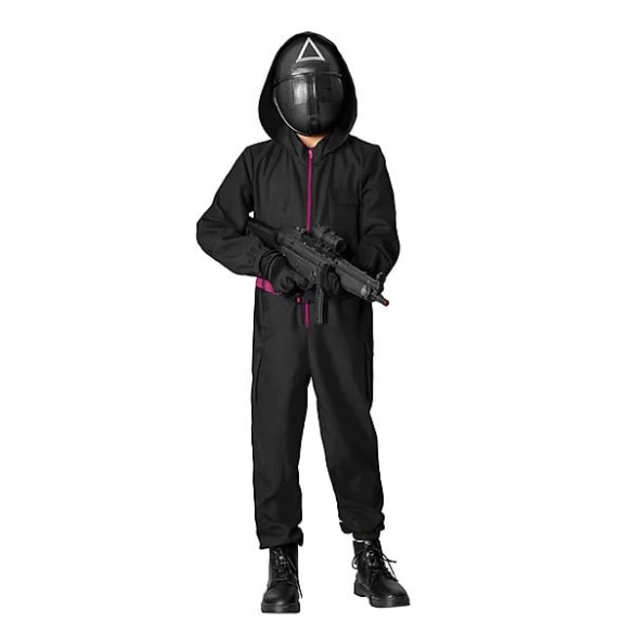 Transform your child into a mysterious masked officer with our Kids Squid Game Masked Officer Costume, featuring a sleek black jumpsuit and iconic mask. Perfect for Halloween, cosplay events, or themed parties, this costume guarantees a standout look that captures the essence of the hit series. Let your little one embrace their favorite character and make a bold statement with this eye-catching outfit!