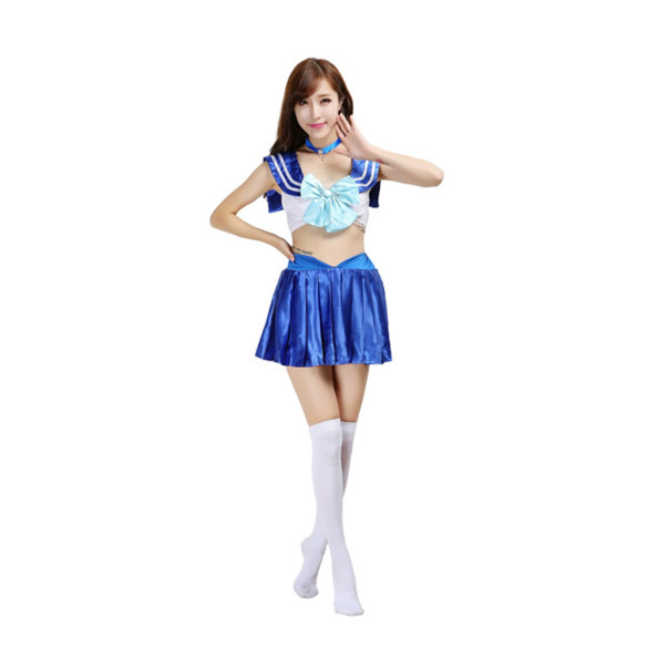 Transform into the enchanting Sailor Mercury with this sexy cosplay costume. Crafted with attention to detail, it features a flattering design that accentuates your curves. Perfect for cosplay events or themed parties, this Sailor Mercury costume is sure to turn heads and make a splash.