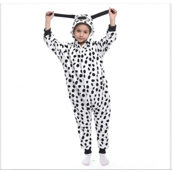 Transform your little one into a fashionable Dalmatian with this adorable Kids Dalmatian Spots Costume Onesie Jumpsuit Set. Perfect for Halloween, cosplay, or playtime, this jumpsuit is comfortable and easy to wear. Let your child's imagination run wild with this fun and versatile costume!
