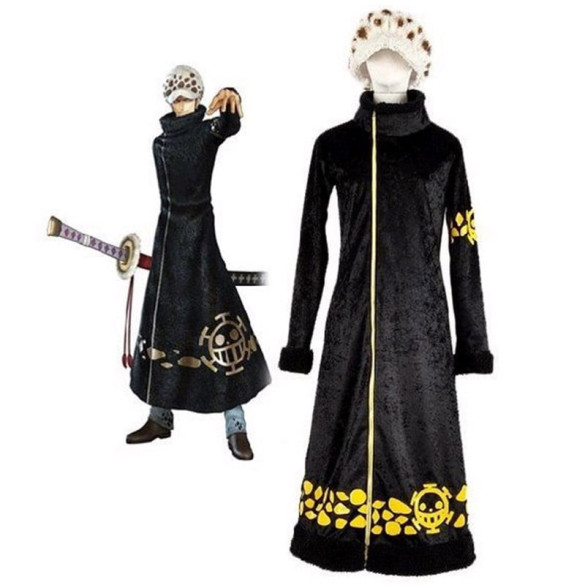 One size fits for Height 160 to 180cm One Piece Trafalgar Law Cosplay Costume. This costume made with good quality and use the Heat Transfer Printing to make the color will not fade.