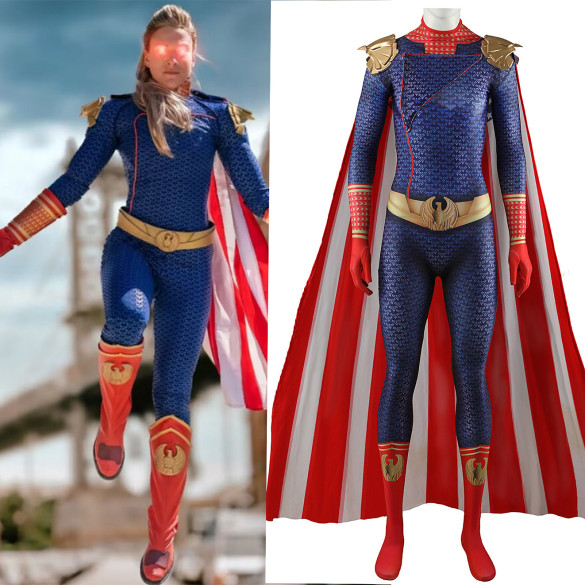 Dress up as the daring Female Homelander with this Bodysuit Cape Set. Perfect for cosplay events or Halloween, this costume lets you embody the iconic character with ease. Stand out from the crowd and unleash your superpowers in style with this must-have ensemble.