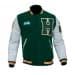 The rib-knitted standup collar has a red and white line, which is very prominent. Cuffs and waistline are also rib knitted with the same red line in the middle. There are two side pockets with very prominent white edges. The highlight of the jacket is the letter "H" on the left side of the chest.
