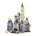 The Disney Castle Brick features a detailed facade with a stone bridge, clock, wide arched entrance, ornate balconies, spired towers, plus a four-story main building and a five-story, golden-spired main tower, both containing rooms with assorted Disney-inspired features and elements.
