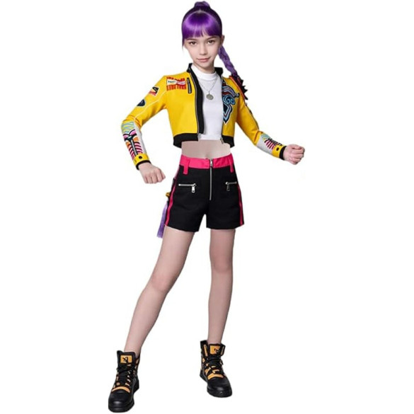 Unleash your inner KPop star with the vibrant KPop Demon Hunters Rumi Costume, featuring a striking yellow jacket and stylish pants set. Perfect for cosplay events or themed parties, this outfit captures the essence of Rumi's fierce and fashionable spirit. Stand out from the crowd and make a bold statement with this must-have KPop ensemble!