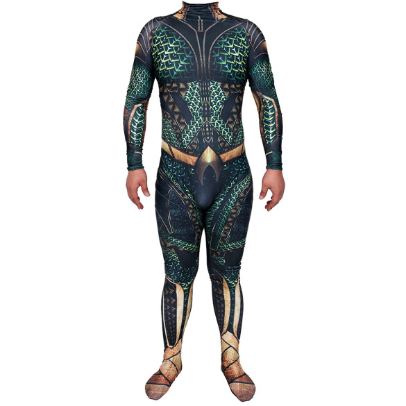 Transform into the King of the Sea with this DC Aquaman Costume featuring a vibrant green bodysuit. Perfect for cosplay events or Halloween parties, this Aquaman costume is sure to make a splash. Embrace your inner superhero and channel the power of Atlantis with this attention-grabbing ensemble.