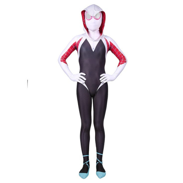 Transform your little girl into the courageous and stylish superhero with the Girls Gwen Stacy Spider-Gwen Costume. This high-quality and comfortable costume features the iconic white and black design that will surely make her stand out at any cosplay or Halloween event. Let her channel her inner Spider-Gwen and save the day in this must-have outfit.