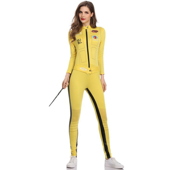 Find your inner warrior with our Women's Kill Bill Costume. This stunning outfit is inspired by the iconic Uma Thurman character from the cult classic film. With its bold yellow jumpsuit and sleek black stripes, it's the perfect choice for Halloween or cosplay events.