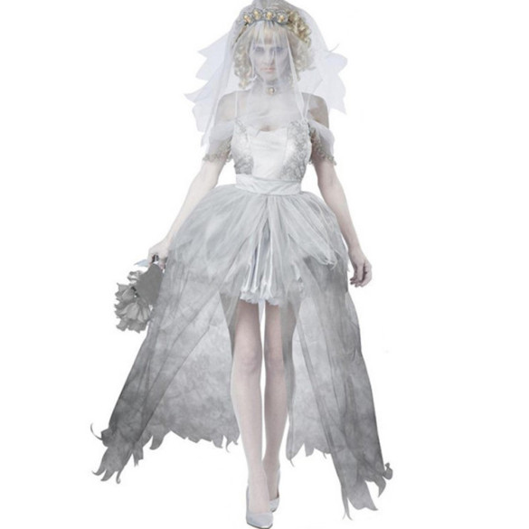 Introducing our Women's Ghost Bride Costume - a hauntingly beautiful ensemble designed to make heads turn at any Halloween party! With its ethereal lace detailing and flowing skirt, this spooky outfit is sure to leave a lasting impression. Transform into a mesmerizing ghostly bride and let your supernatural presence command the night.