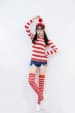 Women Where's Waldo Costume. This quick and easy costume will have you ready for the next big costume party in no time at all. Whether you’re going out with Waldo or just having fun with friends, this red and white striped Halloween costume will make sure you’re the best Wenda around! This costume is made of polyester and cotton; the jeans and shoes are not included.